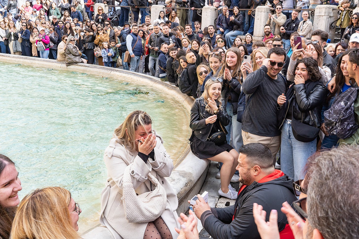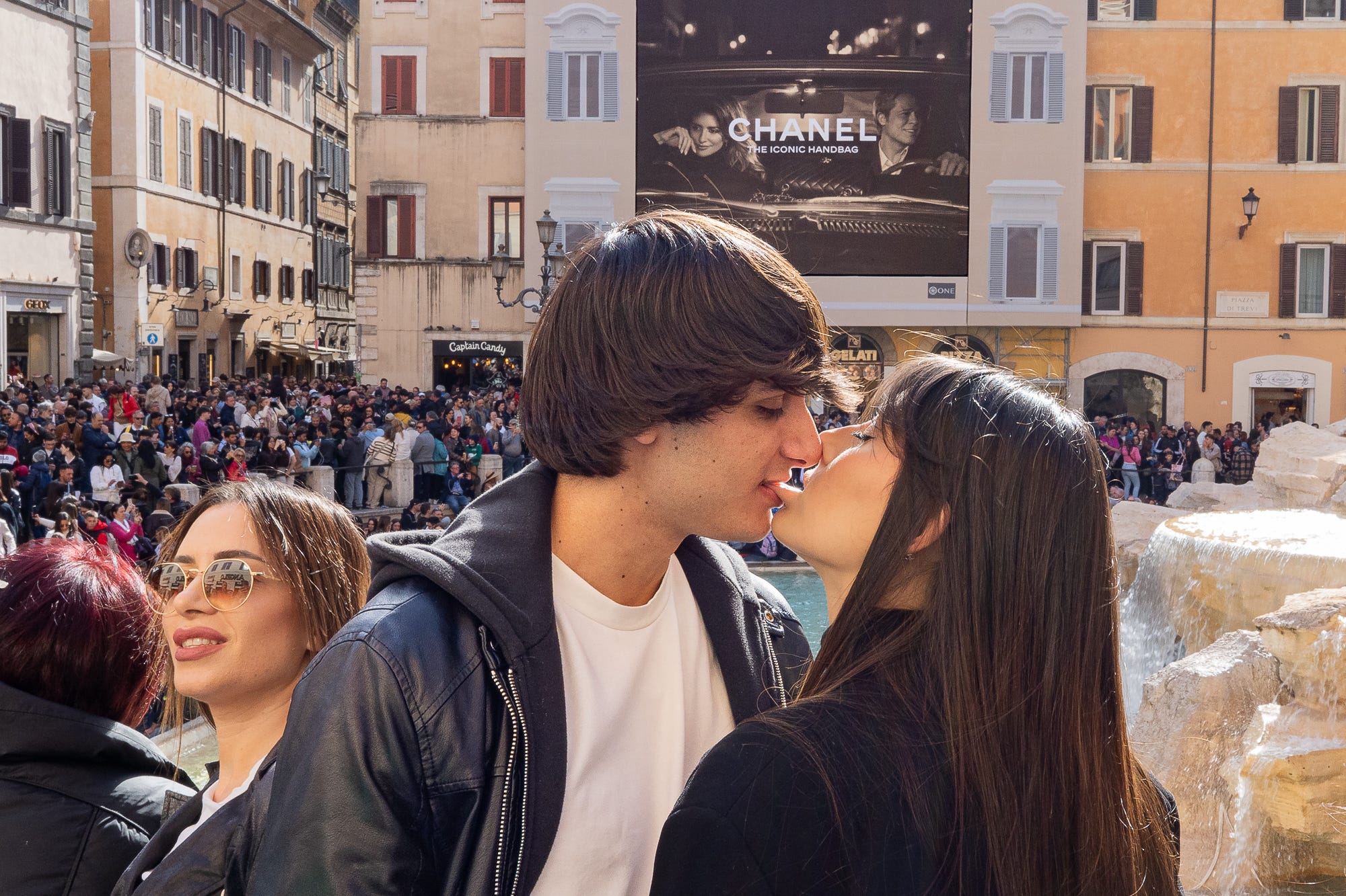 Chasing the one decisive moment that says it all – and opening your ears can definitely help, too – like the proposal of marriage at Trevi fountain in Rome shown in this set. I was already on the go, heard a scream behind me, turned around, saw the man kneeing down, lifted my camera and fired a few shots from above my head. Only one was in focus, with the prospective bride’s hands right in front of her face in that truly emotional moment, the man kneeing down and presenting the ring. I love the fact that all these faces are on the couple, all applauding, only so few smartphones lifted. Look at all these happy and smiling faces!