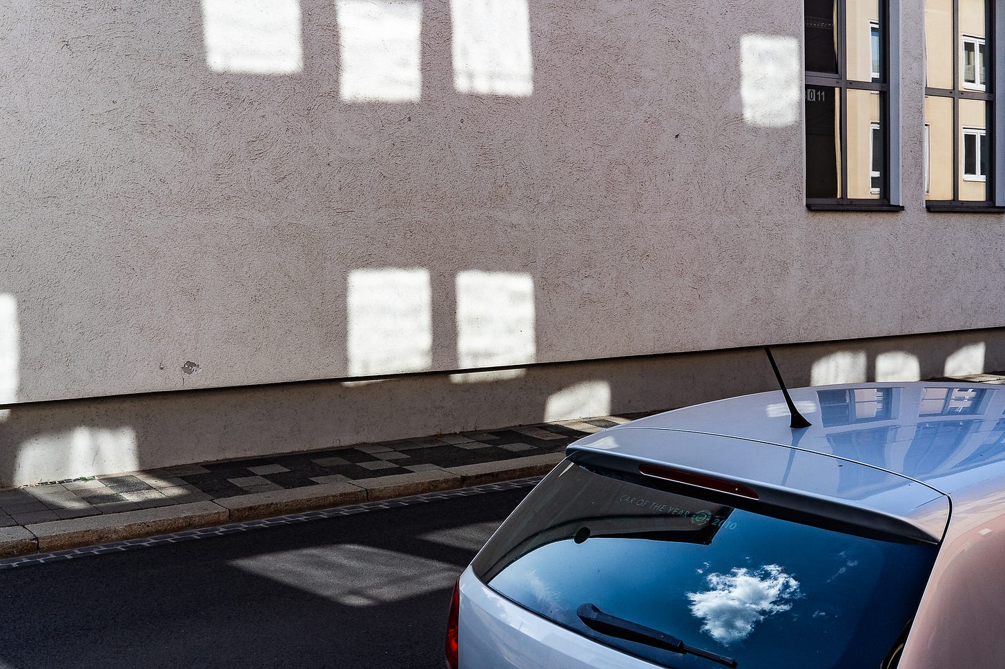 On the other hand, in 2024, UK publisher and photographer David Solomons invited me to do a zine on my hometown of Braunschweig for his Bump Books series – so good things can also happen in smaller and not so spectacular places like my town with a population of around 250,000. For his Bump Book series, David has a policy of only doing city-based zines if the photographer is based there and has been shooting it over a long period of time. I see what he means! So local knowledge definitely helps: an example could be the picture with the square reflections and the cloud in the rear window of the parked car in this set. I had observed and followed these reflections for a long time (which only occurred at certain times of the year and day) and waited for the right foreground. This picture is also included in the Braunschweig zine.