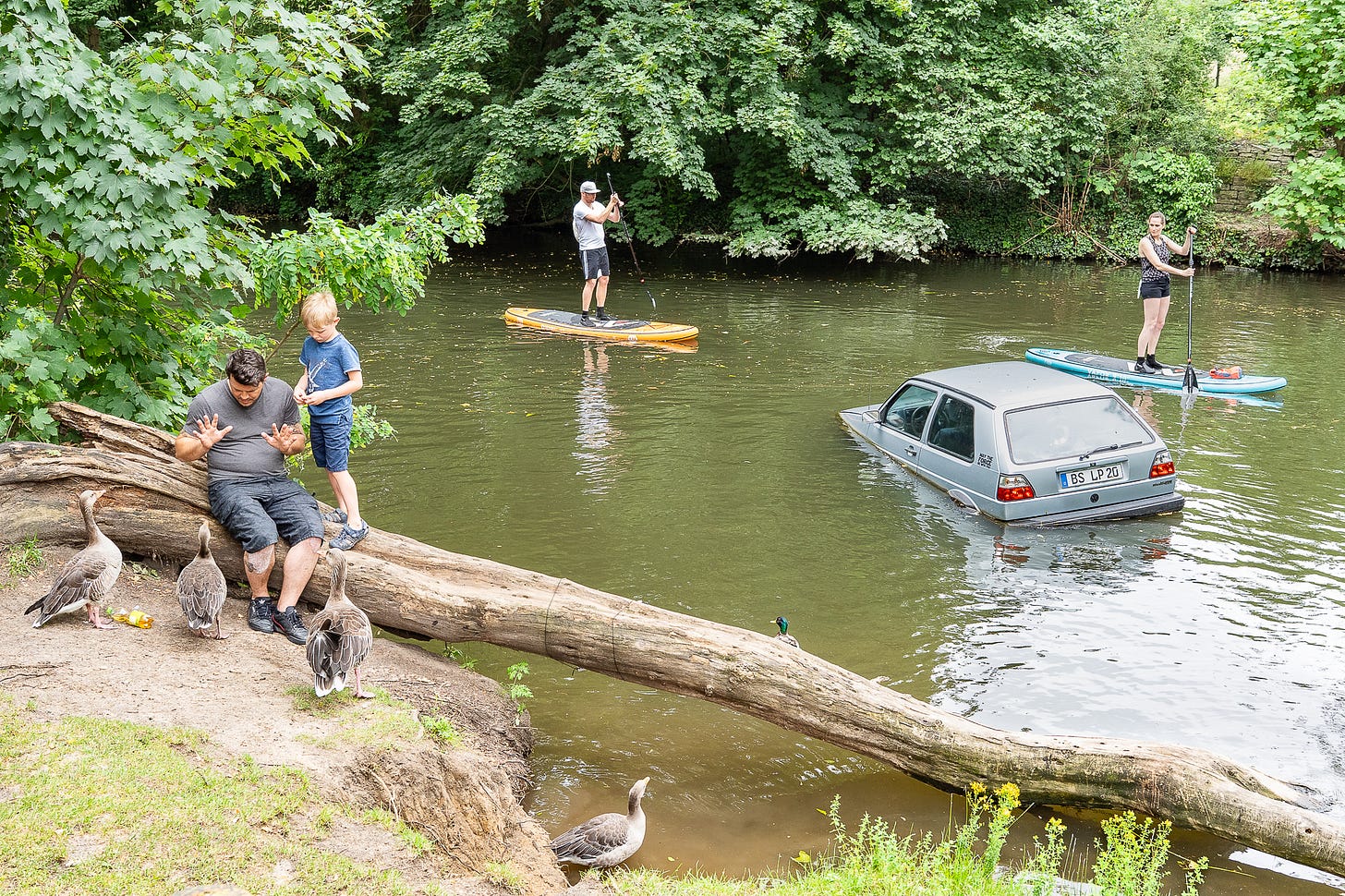 I’m starting with Thomas Hackenberg – a photographer who caught my attention very early on in my own journey with the genre. His image of the car in the river and the paddleboarders stuck with me from the first moment I saw it: strange and full of unanswered questions. Rightly so, it was successful in various contests. It’s one of those rare photographs that stands out in the overwhelming flood of street images.